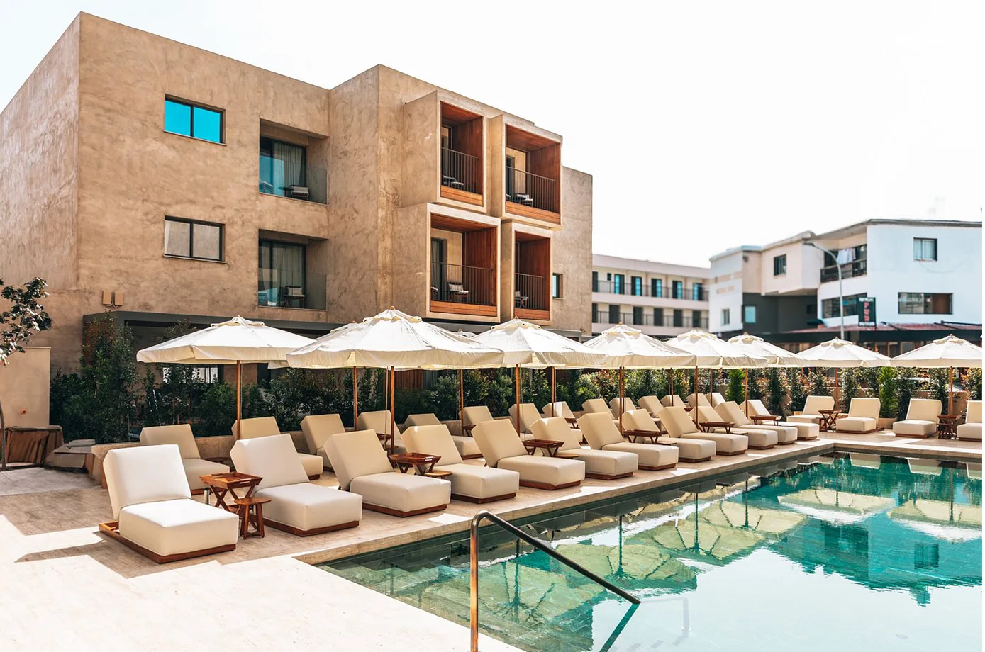 Located in Larnaca, Cyprus, the boutique welcomes its guests with Mediterranean breezes. In this hotel, which has a very flawless architecture, outdoor sconces that complement the architecture and complement the architecture are used as lighting systems. These outdoor sconces aesthetically emphasize the exterior and landscape of the hotel and support the hotel both functionally and visually. At the same time, they ensure the safety of the guests and create a comfortable environment at night. The lighting color used in the sconces was deliberately chosen to be yellow. In this way, the warm and inviting atmosphere of the hotel is reflected.